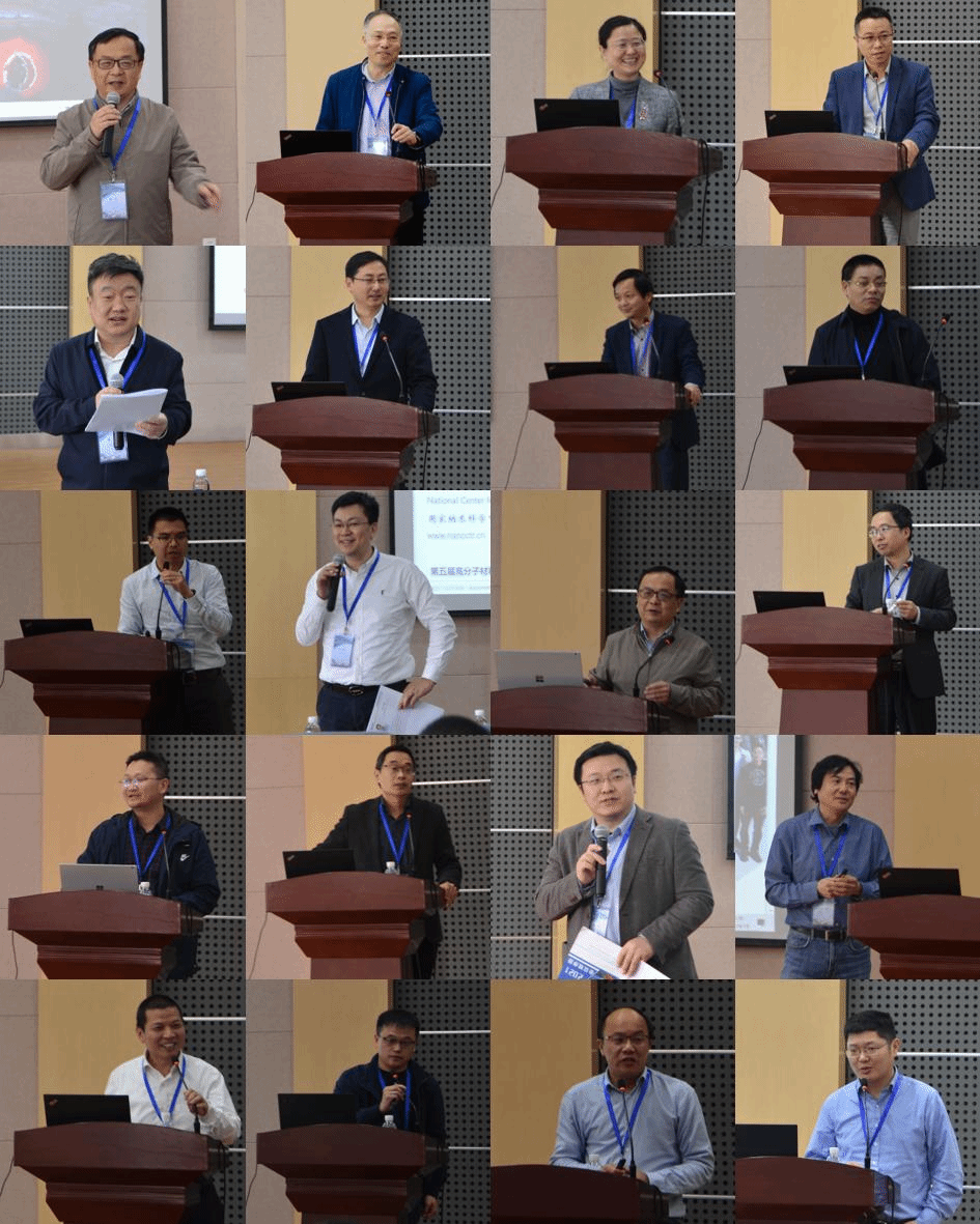 研讨会共分为16个主题报告。上海交通大学路庆华教授首先以“聚酰亚胺在电子领域的应用”为题,系统介绍了他们团队在这一领域的研究进展。随后中山大学、北京航空航天大学、华中科技大学、南开大学、国家纳米科学中心、同济大学、武汉大学、郑州大学、中国科学院长春应用化学研究所、苏州大学、西北工业大学、东华大学的知名专家分别围绕高性能功能聚酰亚胺研究进展、仿生纳米复合材料、多功能聚合物微针阵列及其在浅表疾病治疗中的应用、高分子表面动态褶皱图案、聚合物薄膜表面可控褶皱与光学编码加密应用、多功能纳米复合材料与触觉传感应用、石墨烯范德华界面力学性能、超声响应、骨靶向及血管造影高分子囊泡、基于KOH/尿素水溶液的甲壳素新材料、基于可控/“活性”聚合理论的纳米晶体精准定制、聚甲基丙烯酸十八酯的侧链结晶动力学、刺激响应性有机发光材料的最新研究进展、聚合物手性结构与材料、本征高导热高分子材料、可拉伸离子导电复合材料等研究内容做了高水平报告。