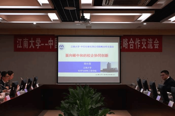 在表面活性剂、化妆品和功能材料等相关领域的影响力,特别是刘小浩教授团队近几年围绕习近平总书记提出的“2030碳达峰/2060碳中和”相关研究领域做出的开拓性工作引起了学术界和行业的关注,催化剂公司对此产生极大的兴趣。接着董玉明介绍了化工学院的情况,刘小浩做了题为“面向碳中和的校企协同创新”的学术交流报告,并同与会人员开展了深入的讨论,初步确定了战略框架协议合作内容,以及合作的具体切入点。交流会后,焦阳总经理一行参观了多宝体育
