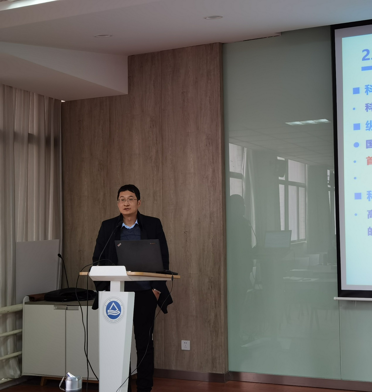 董玉明副院长汇报了学院科研进展及工作思路。2022年学院科研成果喜人,在科研经费、纵向项目、科研论文、授权发明专利等均取得新的突破,但国家级项目、省部级奖励等标志性成果较少,科技服务水平有待加强。最后,对国家级项目申报、科技奖励、专利工作和科研平台提出了建议举措。