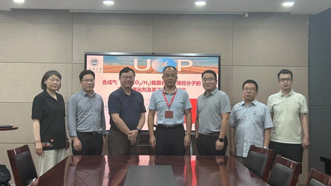 随后,费志浩介绍了自己和来访的各位同事,张奎山代表霍尼韦尔UOP公司介绍了公司的业务领域,能源转型可持续解决方案如可再生燃料、可持续航空燃料、蓝氢和绿氢、碳捕集、塑料回收和储能等、石化和炼油技术、专业研发团队和尖端工具开发突破性化学技术、以及霍尼韦尔UOP公司始终致力于为全球领先的石油和天然气公司研发技术和业务解决方案的百年创新历史和传承一个世纪的转型历史。费志浩也高度赞扬了刘小浩教授团队近年来在二氧化碳催化转化,催化剂合成技术开发,低碳烷烃非贵金属无氧脱氢制烯烃、以及合成气裁剪合成高价值α-烯烃等方面取得的一系列原始创新和具有国际前沿引领性的研究成果,表达了强烈的合作联合技术开发的意愿。