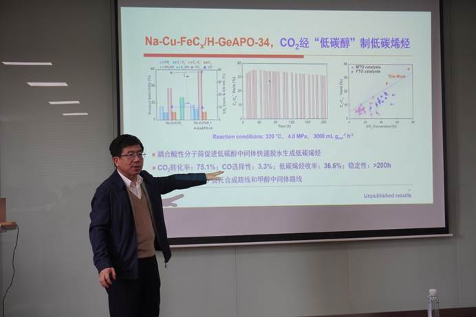 A316会议室分别做了题为“高产能绿色低碳煤间接液化技术”和“CO2加氢制烃的选择性调控”的精彩报告。报告会由多宝体育
