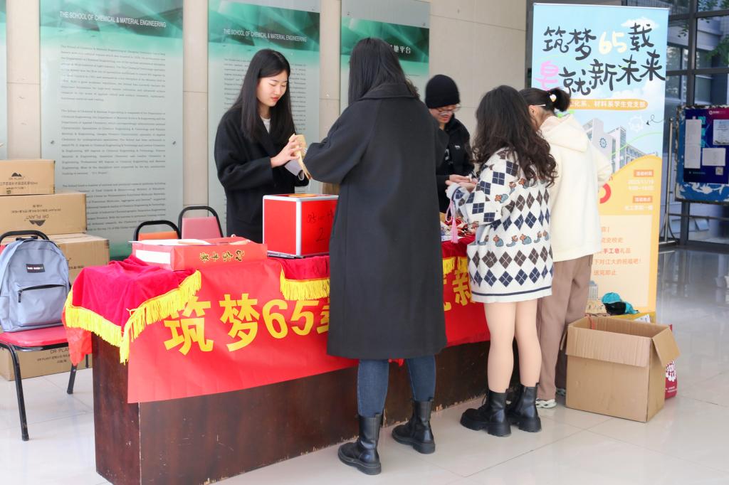 化工系学生党支部、应化系学生党支部、材料系学生党支部于化工楼一楼大厅举办了“筑梦六五载,‘皂’就新未来”主题党日活动,吸引了众多师生和校友的参与。