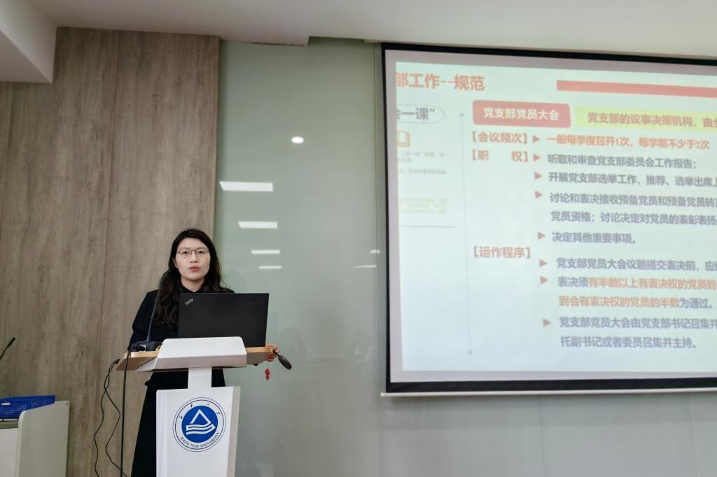张青围绕基层党支部工作要求、党内组织生活制度规范落实、《党支部手册》规范撰写、智慧党建平台操作、党员发展管理、主题教育深化及支部特色党建推进等核心内容展开系统培训。