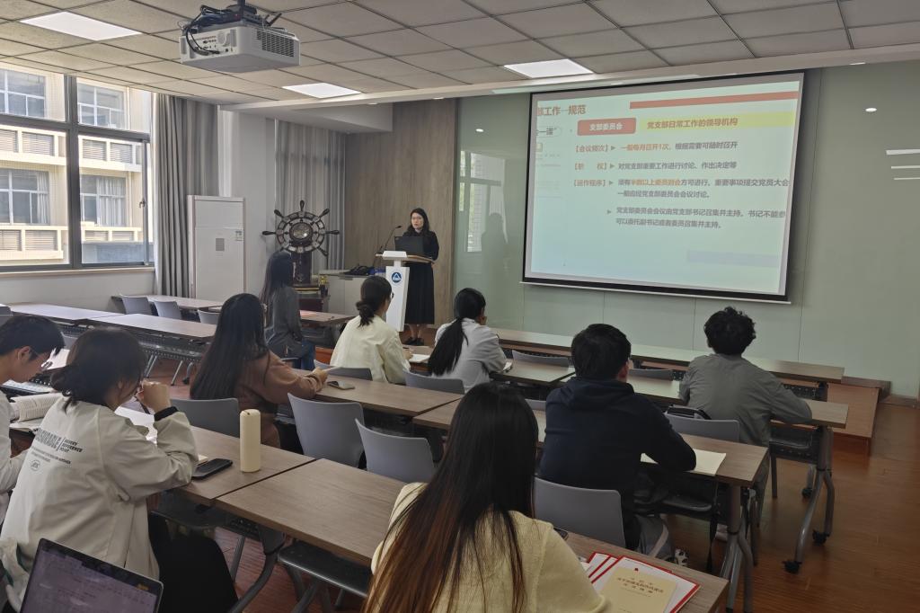 为扎实开展中央八项规定精神学习教育,全面贯彻习近平总书记关于高校基层党建工作的重要论述,进一步提升党务干部的业务能力和履职水平,加强基层党支部标准化规范化建设,4月29日上午,化工学院党委在A316举办党建工作培训交流会。学院党委专职组织员张青为学院全体师生党支部书记等党务干部开展专题培训,聚焦党建实务与理论提升,着力锻造政治过硬、业务精湛、作风优良的党务干部队伍。