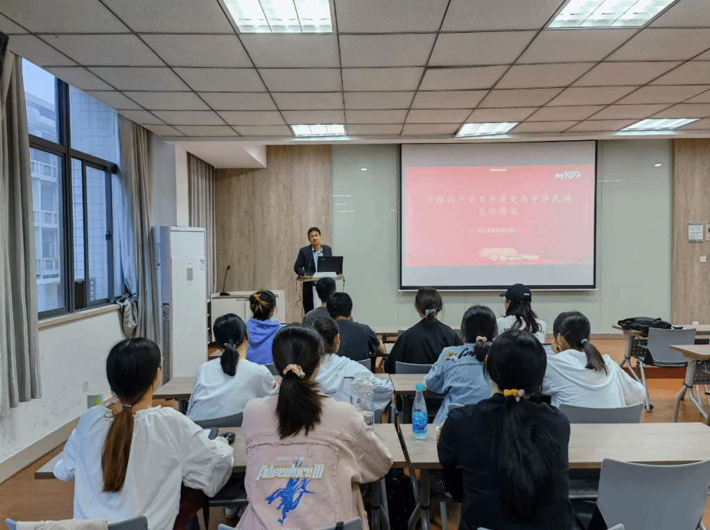 董玉明从九大方面详细介绍了习近平总书记关于党的历史问题的重要论述,使与会学生党员充分认识到开展党史学习教育的重大意义。董玉明分四个阶段对中国共产党党史进行了介绍,讲诉了中国共产党人从开天辟地、改天换地、翻天覆地到如今经天纬地的历史,回顾中国共产党的百年历史,这是一部感天动地的战斗史,也是一部带领全国人民从站起来、富起来到强起来的奋斗史。此后,董玉明列举了新中国七十多年发展所完成的两大奇迹——世所罕见的经济快速发展奇迹、世所罕见的社会长期稳定奇迹,这两大奇迹是我们党执政成就和国家治理成效的重大标志。他强调,中国共产党成功的原因有三:其一,中国共产党有强大的领导能力;其二,中国共产党有科学理论的指导,同时不断推进马克思主义中国化、时代化、大众化;其三,中国共产党有人民群众的支持。
