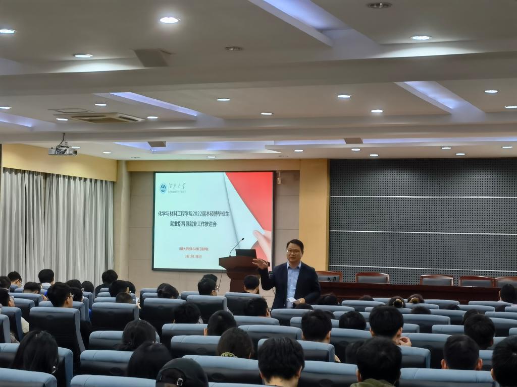 在化工楼B329会议室召开2022届本硕博毕业生就业指导暨就业工作推进会。院党委书记潘庆伟、就业工作辅导员张凯以及学院2022届全体本硕博毕业生参会,会议由研究生辅导员杨璇主持。