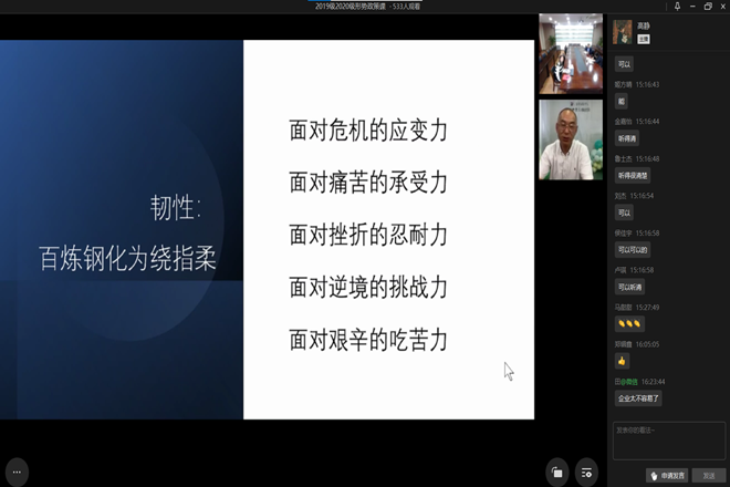 最后,张许昌以“成功不一定需要你跑得最快,但一定需要你坚持不断地奔跑”作为结语,鼓励同学们不断奋进,以个人的勇担使命来回馈国家社会。讲座结束后,引起同学们在直播间的热烈反响。