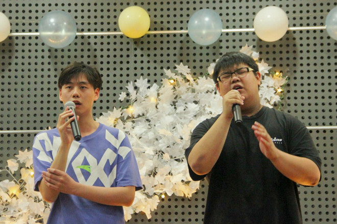 《背对背拥抱》歌声宛转悠扬,《爱你》则充分展示了毕业生们的青春活力,《七里香》《奇妙的惊喜》歌曲表演以欢快的旋律赢得了同学们的喝彩。