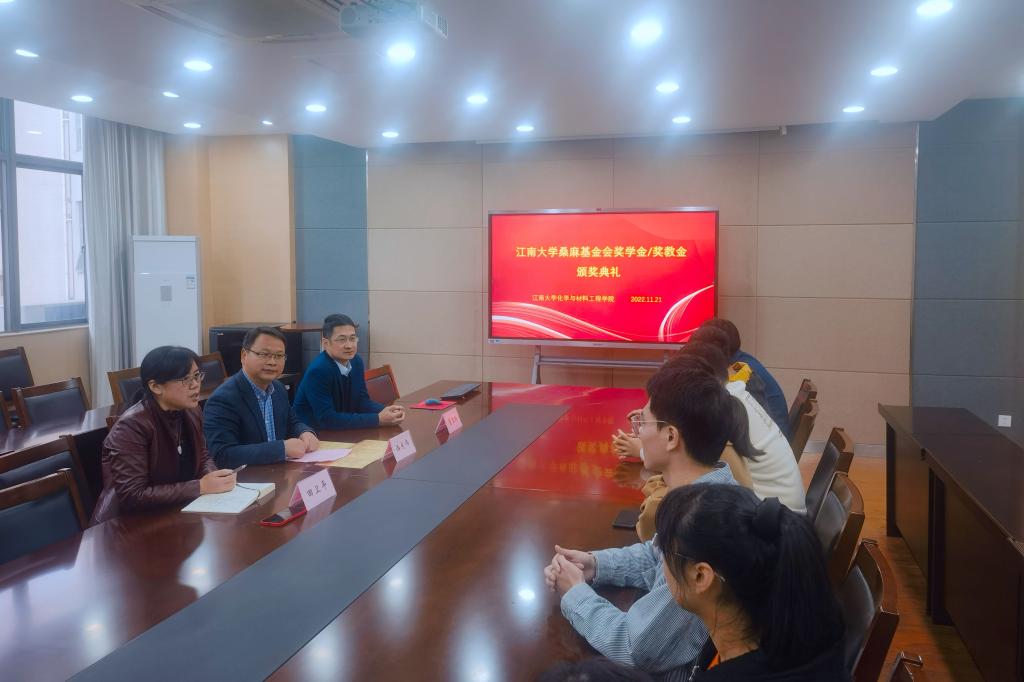 于化工楼A310举行2022年桑麻奖学金、奖教金颁奖仪式,对此次获得桑麻奖学金、奖教金的师生进行了表彰。学院党委书记潘庆伟、获奖教师董玉明教授以及全体获奖学生出席活动。仪式由党委副书记兼副院长田卫平主持。