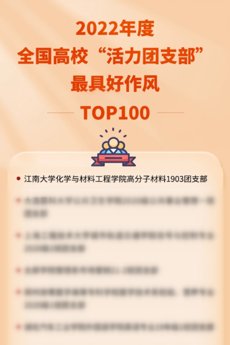 高分子材料1903团支部经过校内选树、校级展示、省级展示、全国展示等环节,成功入选2022年度全国高校“活力团支部”风采展示活动,经过后期评比,荣登《2022年度全国高校“活力团支部”最具好作风TOP100榜》。