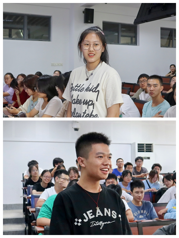 随后,现场进行答疑交流。“作为大一新生可以进实验室开始实验吗”“本科生有国际交流机会吗”“大创项目是所有同学都可以参加吗”“人生导师是怎样配置的”大一新生纷纷提出自己的疑问,现场专业教师、辅导员及优秀学长学姐一一作出解答,帮助新生更深入了解学院、了解专业,更好地规划大学生活。