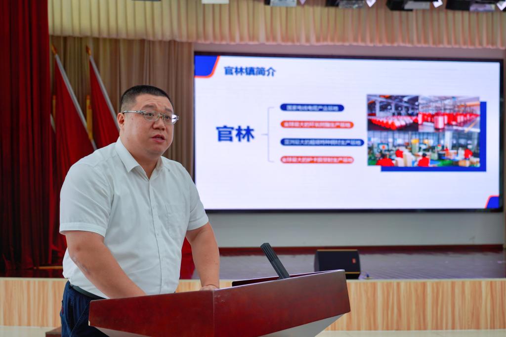活动现场,师生共同观看了官林镇宣传片,对官林镇的经济社会发展情况有了初步认识。官林镇党委副书记王煜东率先致辞,表达了对此次活动的期待和对各方的欢迎,介绍了官林镇经济社会发展情况及人才工作情况。宜兴市人力资源和社会保障局副局长俞震强调了活动对于促进就业和人才发展的重要意义。江南大学化工学院党委副书记兼副院长董霞介绍了学院基本情况,她表示,本次活动促进了高校与企业之间的紧密联系,还为化工领域的创新型人才培养提供了平台。