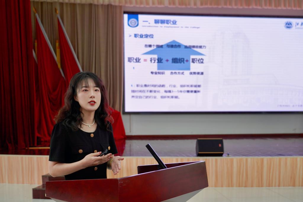 辅导员李晓洁被聘请为官林镇“高校引才大使”。随后,化工学院辅导员李晓洁为在座学生进行了就业指导培训,官林镇党委政法委员朱涛进行人才政策宣讲。活动最后,学生代表谭增辉、魏梦洁进行发言,展现了学院学子积极进取的精神风貌和对未来的美好憧憬。