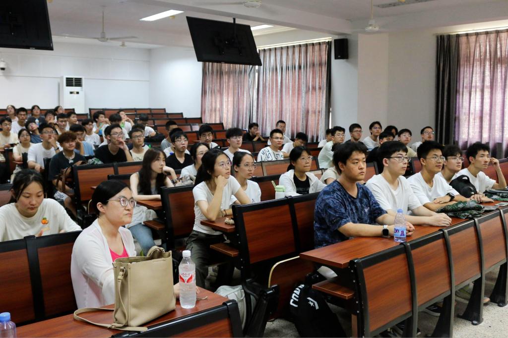 应用化学专业见面会由应化系副主任晏晓东主持。他首先介绍了应用化学的发展历程和专业背景,他提出,江南大学应用化学专业主要为化妆品及其相关行业培养科研与应用型人才,是全国化学类专业中唯一面向化妆品行业的“211”和“双一流”院校,被誉为化妆品行业的“黄埔军校”。随后,他着重介绍了新生们关心的升学问题,本专业深造率已提升至56.9%,毕业生就业率达90%以上,师资力量也逐年增强,真正做到了专业为学业赋能。