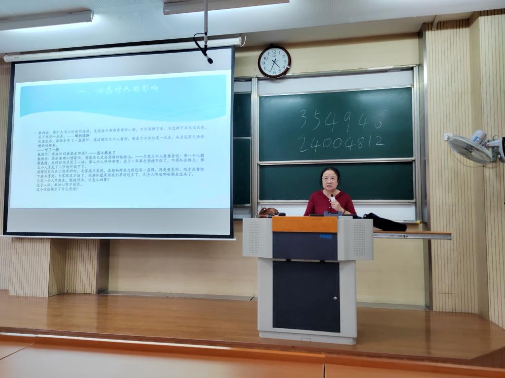 于2024年10月11日下午在第一教学楼1B103教室举办题为《阳光心态 成就美好人生》的心理讲座,讲座由人文学院肖凌燕老师主讲,多宝体育