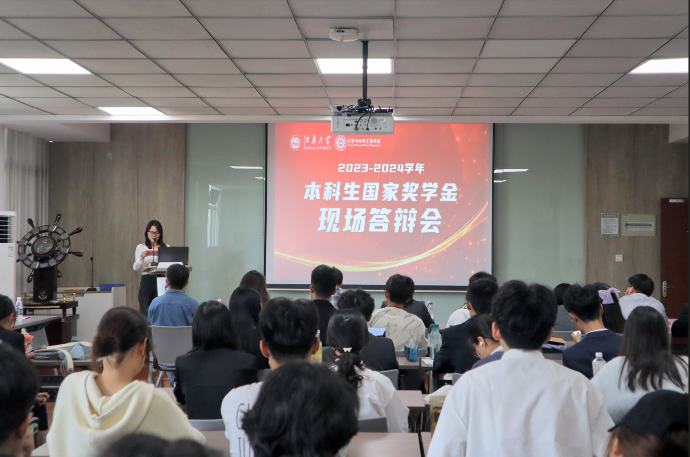于化工楼A316报告厅举行2023-2024学年本科生国家奖学金评选答辩会。学院党委副书记兼副院长董霞,学工办主任兼分团委书记鞠峰,学工办副主任侯玉莹,副教授张萍波、白绘宇、洪流、蒋航,辅导员郝林青、马航威出席并担任评委。材料系及化工系2024级本科新生观摩了答辩。答辩采取线上线下相结合的方式,依照公平、公正、公开原则进行。