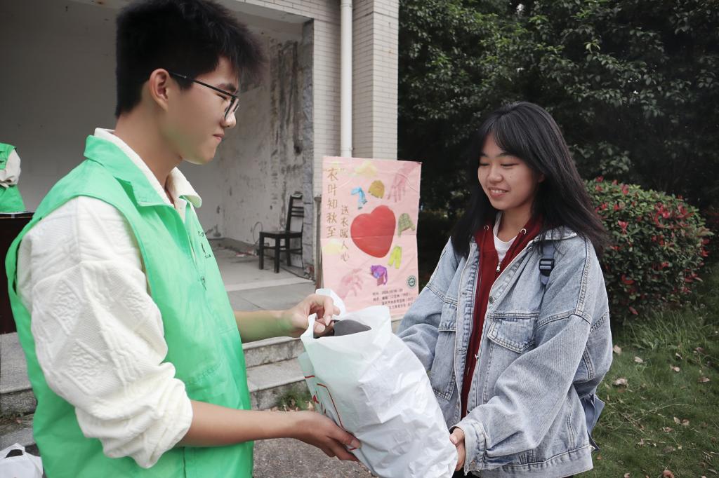 青年志愿者协会分别在北区榴园和南区溪苑开水房旁空地举办了“‘衣’叶知秋至,送衣暖人心”爱心衣柜活动,吸引了不少同学到场参与。