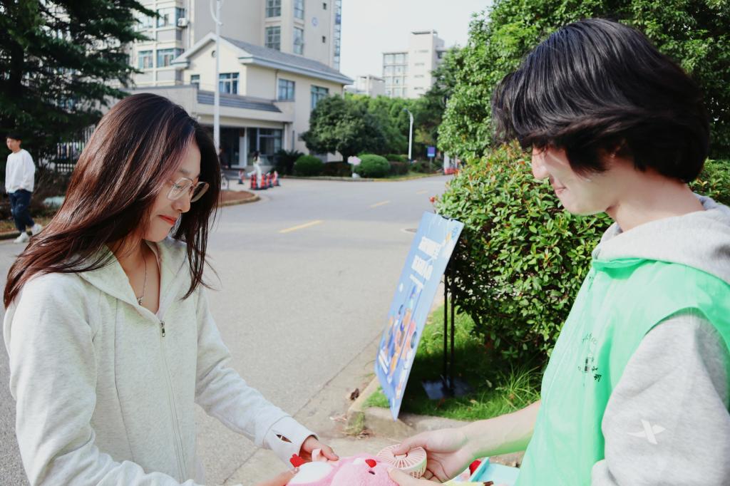 传播秋日温暖,传递化工温情。现场同学们被精心布置的场地和海报所吸引,志愿者们热情地为大家介绍活动内容和意义。同学们积极响应,捐赠者络绎不绝,志愿者们忙碌而有条不紊地接待着前来捐衣的同学。同时,化工青协还为捐衣捐物的同学特别准备了一些小礼物,以表示对他们爱心的感谢,让捐赠者们冒雨而来,暖心而归。