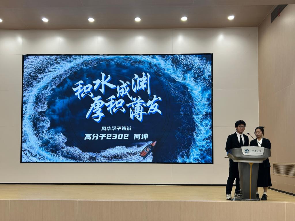 首先进行的卓汇菁英类竞选,李家豪等同学分享了他们在科研探索和党务工作中的卓越表现,展现了化院学子的理想追求与责任担当。他们的故事激励每一位在场的同学,传递勇于追梦的精神力量。在学研精进类展示中,赵伊等同学积极响应国家战略,立足科技前沿,勇于创新,在各自的领域取得丰硕成果。他们不仅展示了年轻学者追求卓越、勇攀高峰的精神风貌,还为同学们树立了学术研究的标杆。在坚毅追光类展示中,周康杰同学以其坎坷的求学经历和在科研中拼搏奋斗的故事,深刻诠释了“坚毅是拼搏的底色”。他用自己的经历勉励学弟学妹们在面对困难时保持坚定信念,勇敢向前,书写属于自己的辉煌篇章。在践行先锋类展示中,方承格等同学秉承开拓奉献的精神,积极参与学生工作和志愿服务,成为连接学院与学生的桥梁。他们不仅在日常学习生活中展现了优秀的领导和组织能力,更在实际生活中彰显了新时代青年的风采与力量。在文体风尚类竞选中,陈丹萍等同学在体育活动中表现出色,在市、校、院级比赛中取得佳绩,以拼搏进取的精神闪耀舞台。他们不仅个人成绩斐然,更带领团队屡获佳绩,摘得各级奖项。他们的表现充分展现了青年人应有的活力与激情,彰显了青春无畏、奋勇向前的精神风貌。