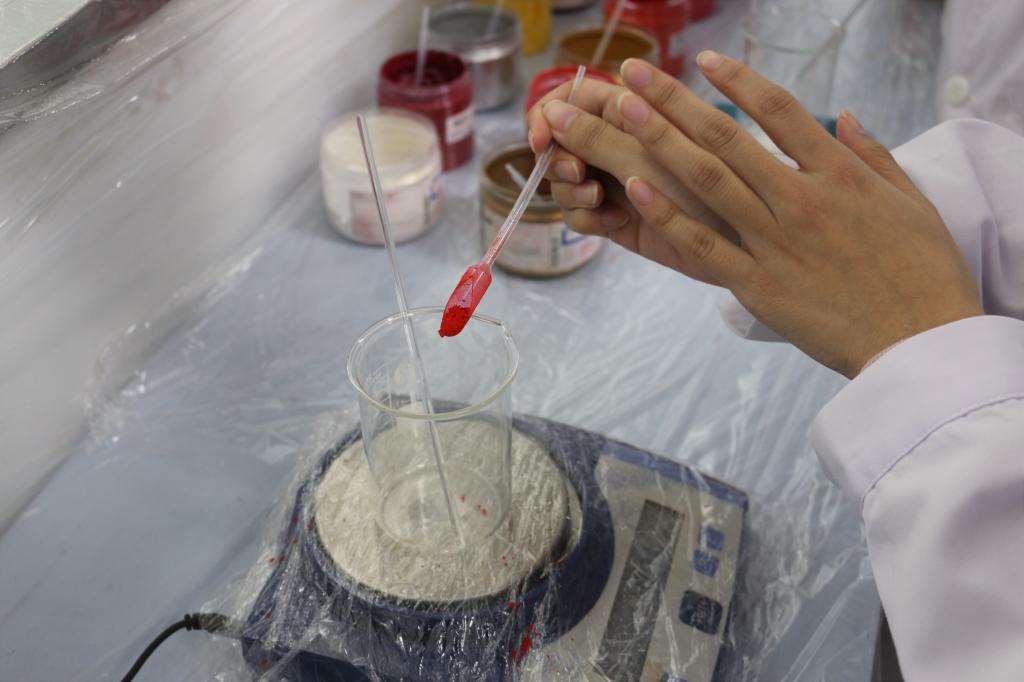 比赛初始阶段,选手们严格遵守实验室操作规定,身着实验服,认真聆听主持人讲解制作口红流程及操作的注意事项。接着,选手们利用各种材料和工具,进行调配色粉、添加蜡油、加热融化、滴加香精等一系列制作步骤。最后将所制液体导入磨具,待冷却后脱模即完成口红制作。选手们在参赛过程中体现出高超的创造能力和卓越的动手能力,制作出了带有个人特色且外观精美的口红,真正地体现了化学的艺术之美,展现了化学之于美妆,化学之于生活的重要性。本次大赛的举办,通过化学与美妆结合的方式提高了同学们对化学学习的热情,切身体验了制作化妆品的流程,培养了浓厚的兴趣。