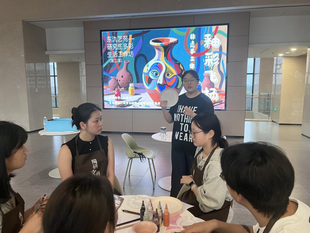研究生会在东氿校区知行楼举办“东氿艺苑-研究生多彩生活工作坊”系列活动的第二期课程——“釉彩飞扬”非遗陶绘体验活动。本次活动由化工学院研究生会联合共青团宜兴市委陶都星光课堂共同举办,吸引了来自各专业的30余名师生积极参与。