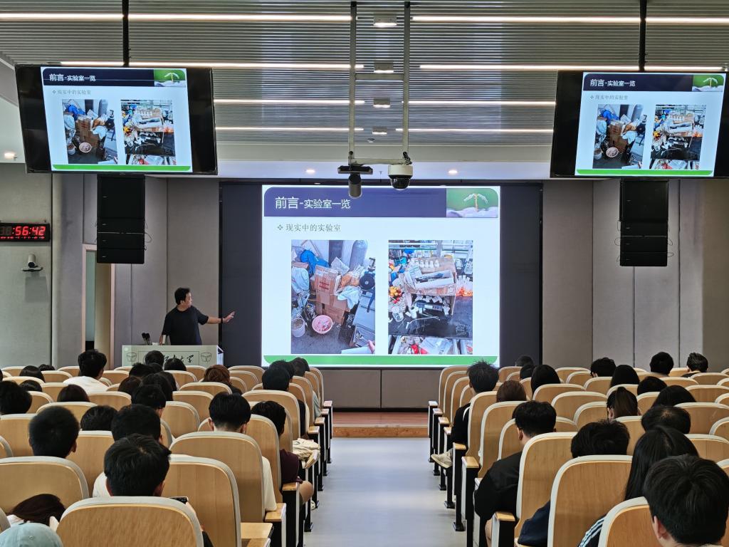 在东氿校区知行楼 C106 开展了实验室安全准入讲座,并进行大型仪器平台测试注册、申请与使用方法的现场教学。本次培训由东氿校区实验室管理老师张一波主讲,全体研一新生积极参与学习。