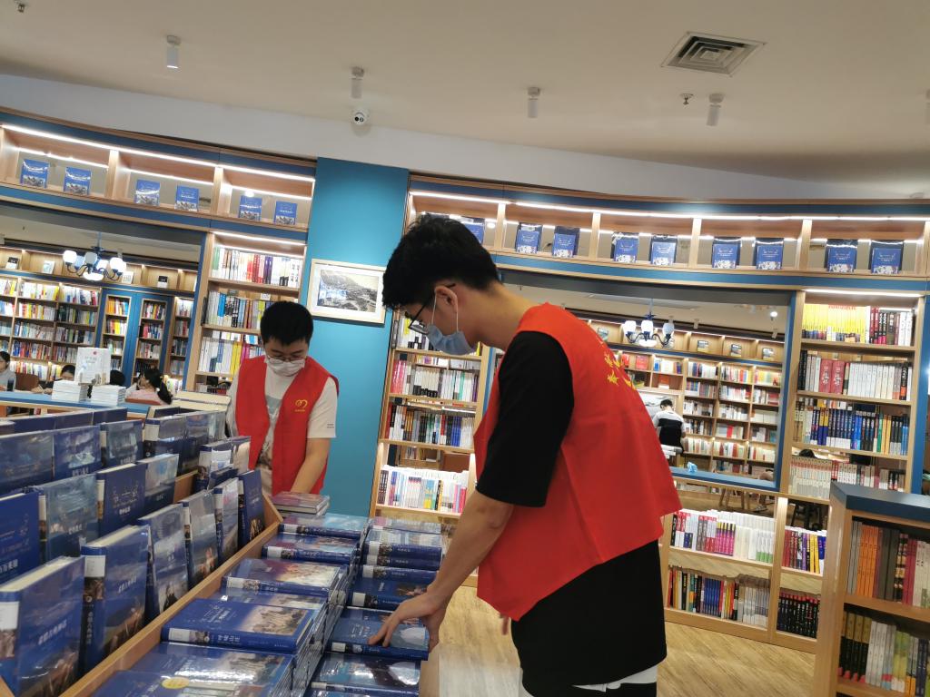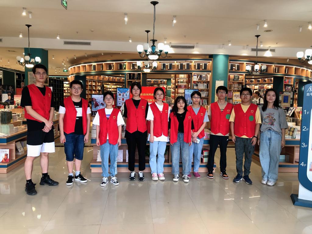 在第一次志愿者服务中,我们是作为新华书店的引导和伴读工作人员。我们的工作内容是帮助和引导读者找到他们所需要的书籍,整理书籍,维持书城内部的秩序以及帮助某些阅读障碍者完成书籍的阅读。这要求我们首先熟悉书城内部的布局和构造,同时也要有足够的耐心和良好的沟通能力和表达能力。在这期间,我们帮助了许多来寻求知识的陌生人;在闲暇时,我们也不忘提升自己——翻开一本好书,去感受文学的熏陶。