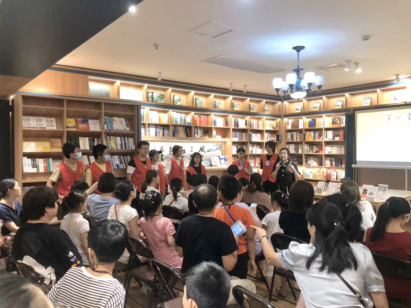 因为第一次志愿者服务的完美落幕,我们受邀成为25号周六下午“阳明讲堂”启动仪式的服务志愿者。这次我们的任务是分组带领参与讲堂学习的小朋友完成“在玩耍中学习”游园活动。25日下午两点到四点半,我们陪伴他们一起学习如何成为一个小小主持人,在众人的目光下大胆发言;我们一起搭建乐高积木,在动手中展现创造力;我们一起阅读绘本,学习故事中蕴含的美德和深刻哲理。我们不仅看到了这些孩子们对学习展现出的极大兴趣,也看到了他们身上的灵动和惊人的创造力。他们是祖国的花朵,是茁壮成长的希望的幼苗。与此同时,在活动过程中,我也观察到书城里的其余的人们或是捧着一本好书,或是专注于记录笔记,书香袅袅绕姚城。一直到五点,我们的志愿服务至此结束,所有志愿者在大厅中央合影留念。