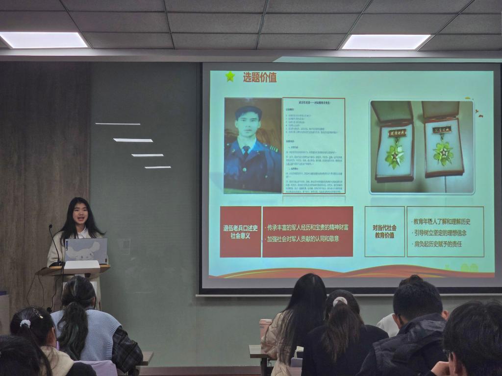 在化工楼A316举办第三届“光辉的足迹”实践故事报告会暨信仰公开课。学院学工办主任兼分团委书记鞠峰、2024级辅导员马之禾、“鼋访风华”实践团负责人张林曼、隽鸿博出席活动并担任评审,2024级60余名本科生参加了活动,活动由朱思盈、靖朝阳主持。