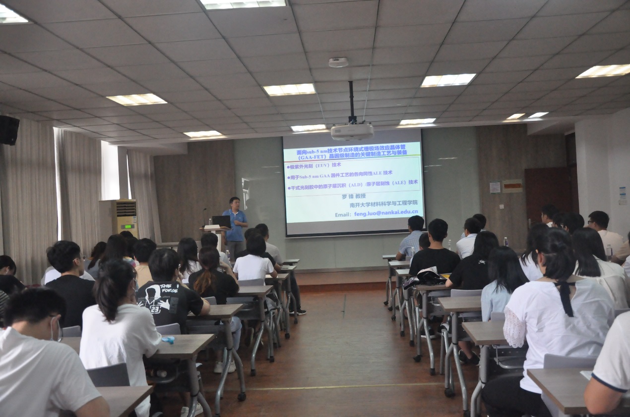 交流访问,并做了题为“面向sub-5 nm技术节点环绕式栅极场效应晶体管晶圆制造的极紫外光刻及原子沉积与刻蚀关键制造工艺与装备”精彩报告。东为富院长主持了此次报告会,并对罗锋教授的来访致以热烈的欢迎。化工楼A316报告厅里,百余师生济济一堂、座无虚席,认真聆听报告。