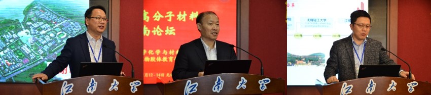 、合成与生物胶体教育部重点实验室共同承办的第四届高分子材料江南论坛在学校图书馆五楼报告厅顺利举办。来自北京大学、复旦大学、浙江大学、吉林大学、南京大学、四川大学、北京化工大学、华东理工大学、华南理工大学、杭州师范大学、西北工业大学、国家纳米科学中心、中国科学院长春应用化学研究所等十余所高校、科研院所及我校多名专家学者出席会议,围绕高分子材料领域的最新研究成果及发展趋势展开学术交流。