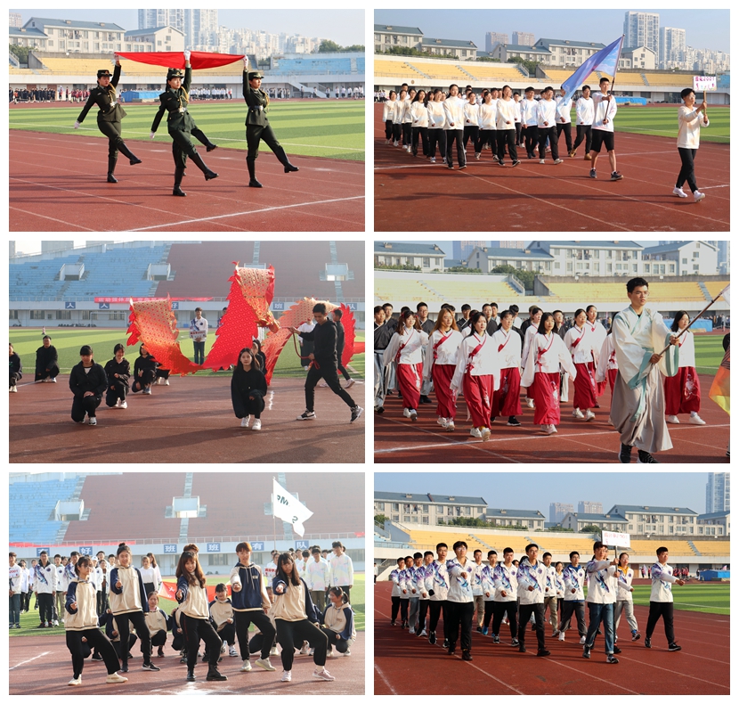 第九届运动会在体育中心拉开帷幕。学院党委书记潘庆伟、党委副书记、副院长田卫平、分团委书记任增亮、2020级部分班主任以及各年级辅导员出席了开幕式。