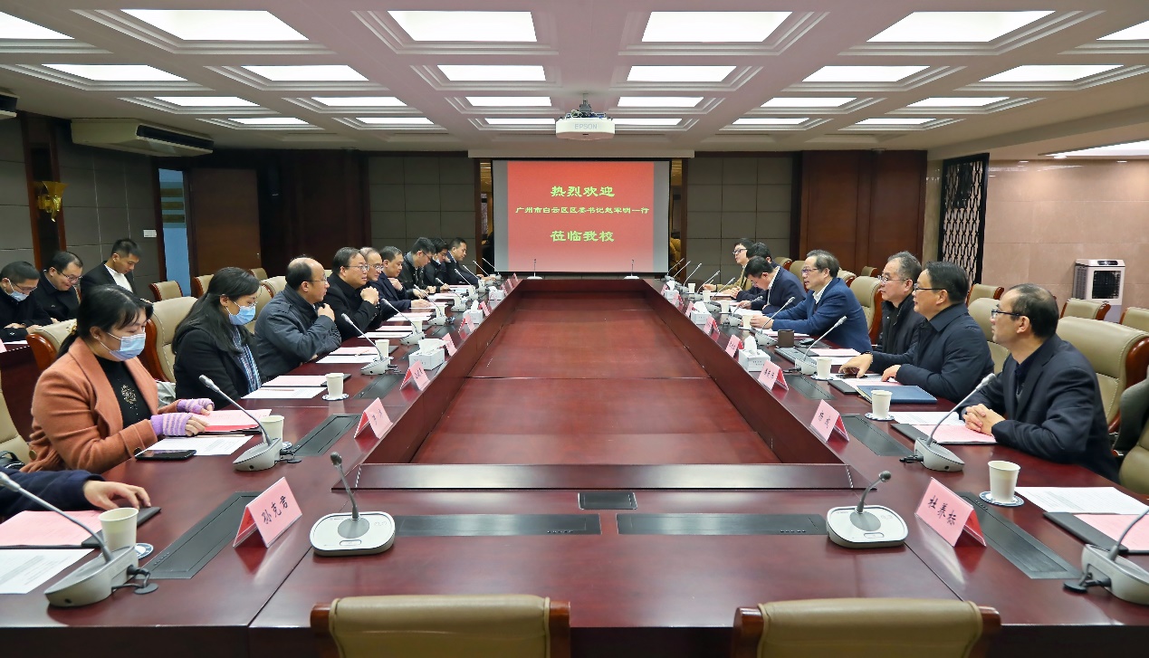 1月22日上午,广州市白云区委书记赵军明、区委副书记潘志军、副区长蔡胜以及白云区各部门主要负责人一行15人来校推进“江南大学-白云美湾国际化妆品研究院”合作共建工作。校党委书记朱庆葆,副校长顾正彪,校长助理张光生,产业技术研究院、多宝体育