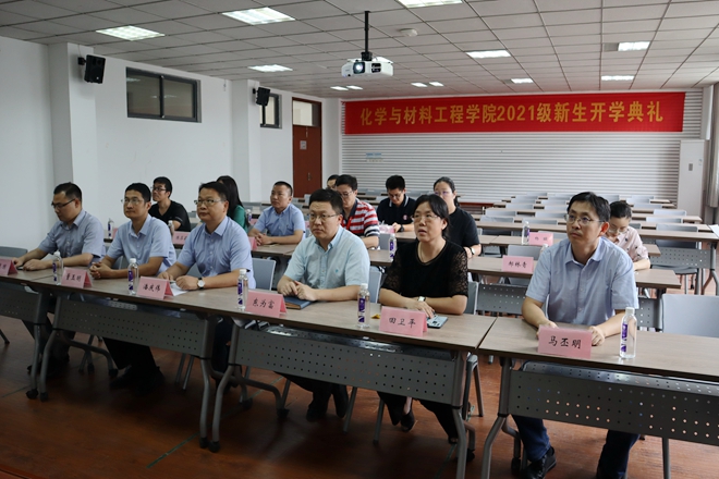 2021级新生开学典礼在化工楼A316会议室举行。鉴于当前疫情防控形式,本次开学典礼采用线上线下相结合的方式举行。学院党委书记潘庆伟,院长东为富,副书记、副院长田卫平,副院长董玉明,副院长马丕明,副院长顾志国以及各新生班主任,各年级辅导员出席本次开学典礼。典礼由2021级辅导员郝林青主持。全体本、硕、博新生通过网络直播同步观看了典礼现场。