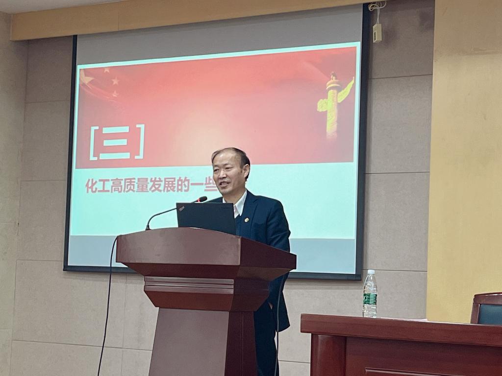 3月8日下午,化工学院B329会议室举行新学期教职工政治理论学习第一课,校党委常委、副校长顾正彪教授以《深入学习贯彻党的二十大精神,以持续奋进的姿态推进学院高质量、跨越式发展》为题为全体教职工主讲党的二十大精神专题内容。