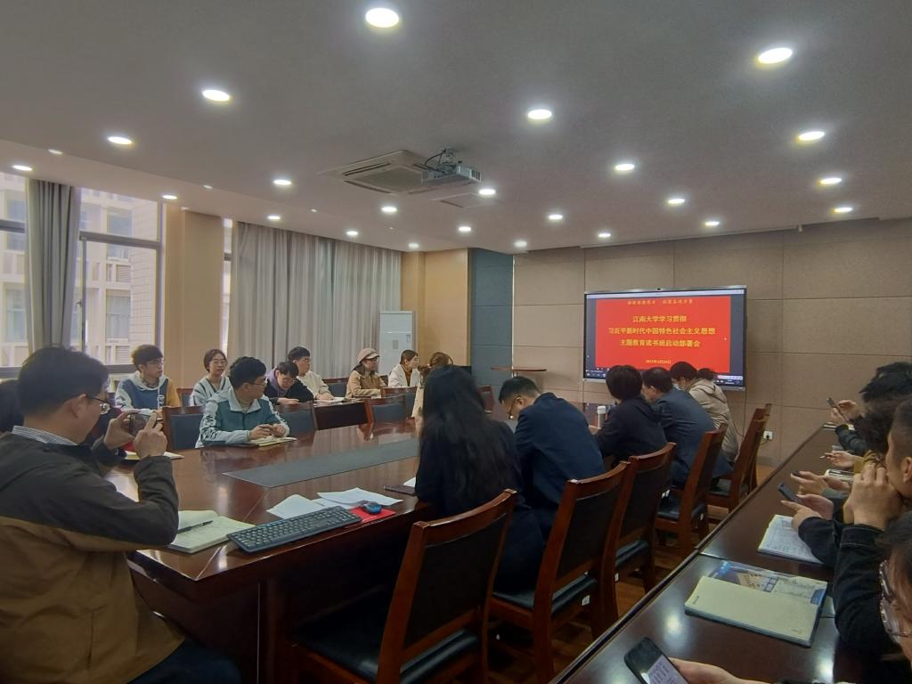 组织各师生党支部书记、支部委员在学院A310分会场集体收看江南大学学习贯彻习近平新时代中国特色社会主义思想主题教育读书班启动部署会。