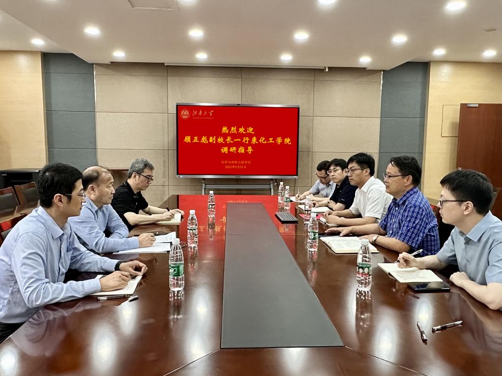 学院党委书记潘庆伟首先汇报了全院学习贯彻习近平新时代中国特色社会主义思想主题教育进展情况、任期目标重大任务思考与谋划情况。院长刘仁从学院学科建设、科学研究、师资队伍、平台建设等四个方面介绍了学院的建设与发展现状,着重汇报了学院在学科方向凝练、重大科研成果突破、人才梯队建设、平台迎评准备等方面的思路和举措。与会人员围绕主题教育深入推进、化工与材料学科建设未来发展的重点、难点、突破点展开了深入的讨论。刘飞希望学院能进一步凝练标志性成果,发挥好化工的优势力量,推动学院整体实力的提升。