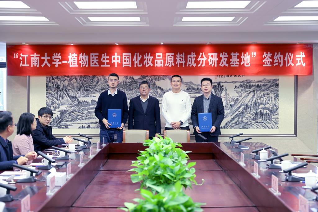 12月21日下午,“江南大学-植物医生中国化妆品原料成分研发基地”签约仪式在行政楼B305举行,中国工程院院士、江南大学陈卫校长,植物医生创始人兼董事长解勇,食品生物技术中心主任、益生菌与肠道健康国际联合研究中心主任赵建新教授,食品学院崔树茂教授,未来食品科学中心康振教授,工信部化妆品原料创新成果产业化基础公共服务平台主任、多宝体育