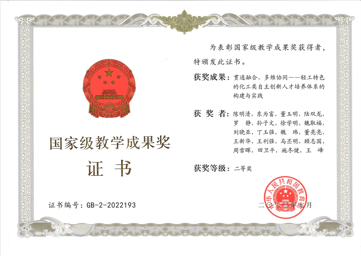 这一年,我们坚守初心、立德树人,人才培养硕果盈枝。深化教育教学改革,教风学风持续向好。“贯通融合、多维协同——轻工特色的化工类自主创新人才培养体系的构建与实践”成果荣获国家级教学成果奖二等奖。化学工程与工艺、高分子材料与工程两个专业接受了国家工程教育专业认证。年度新增出版国家级、江苏省、轻工业规划教材3部。学生学科竞赛获奖A类12项,升学质量稳步提升,本科毕业生整体深造率57.3%。研究生论文质量全面提升,抽检合格率100%,优良率位列学校前列,获评省优秀硕士学位论文1篇。“我最喜爱的老师”“校长特别奖”等师生先进典型不断涌现。