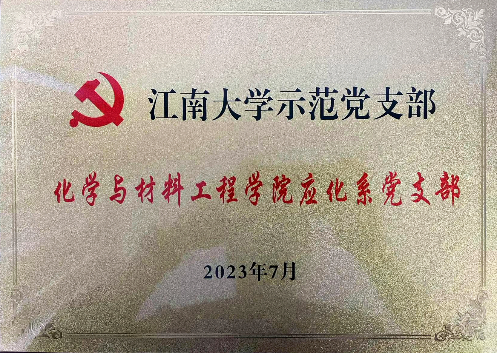 应化系党支部获批江南大学示范党支部