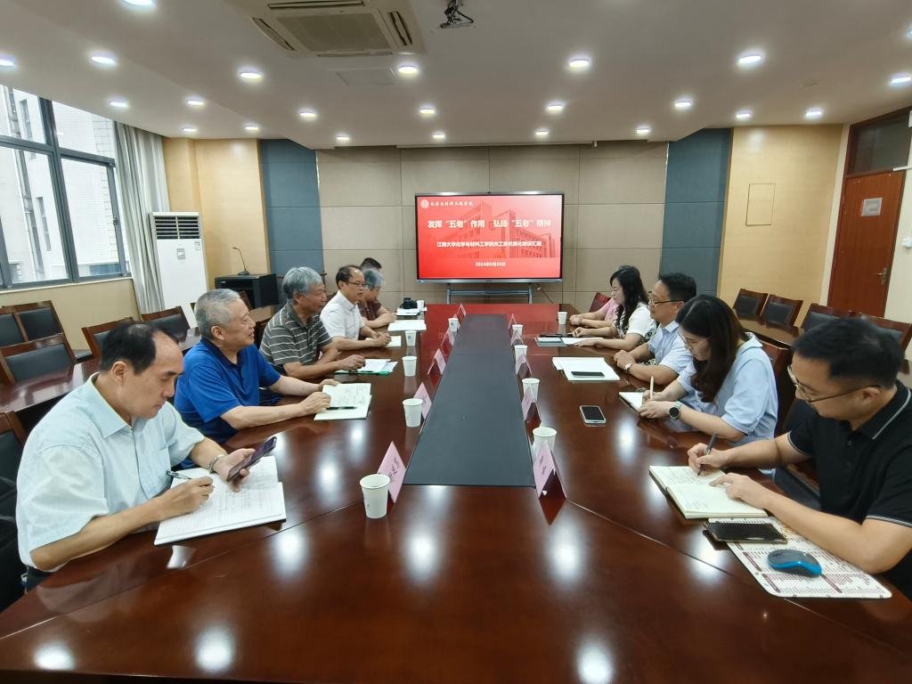 交流环节,董霞以“发挥‘五老’作用,弘扬‘五老’精神”为主题汇报了学院党委推进关工委优质化建设情况,学院关工委围绕筑牢机制基石,增强“五老”生机活力;筑实工作平台,发挥“五老”独特优势;筑建活动阵地,创建“五老”特色品牌三个维度,充分发挥“五老”独特优势,助力学院党建提质增效、教师立德树人、学生成长成才。张才兴肯定学院发展成果以及关工委工作成效,表示校关工委将统筹校内老同志资源,配足配强学院关工委队伍,贴近学生实际需求,组织开展党团共建活动。随后,与会人员以学院关工委优质化建设为切入点进行了交流。