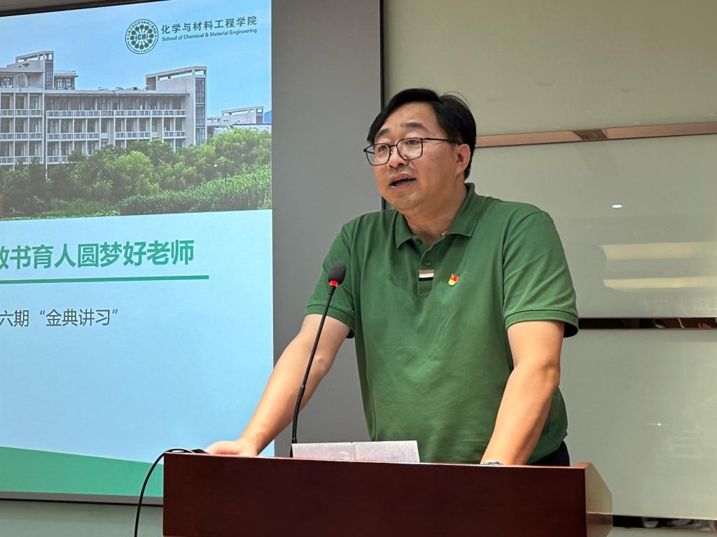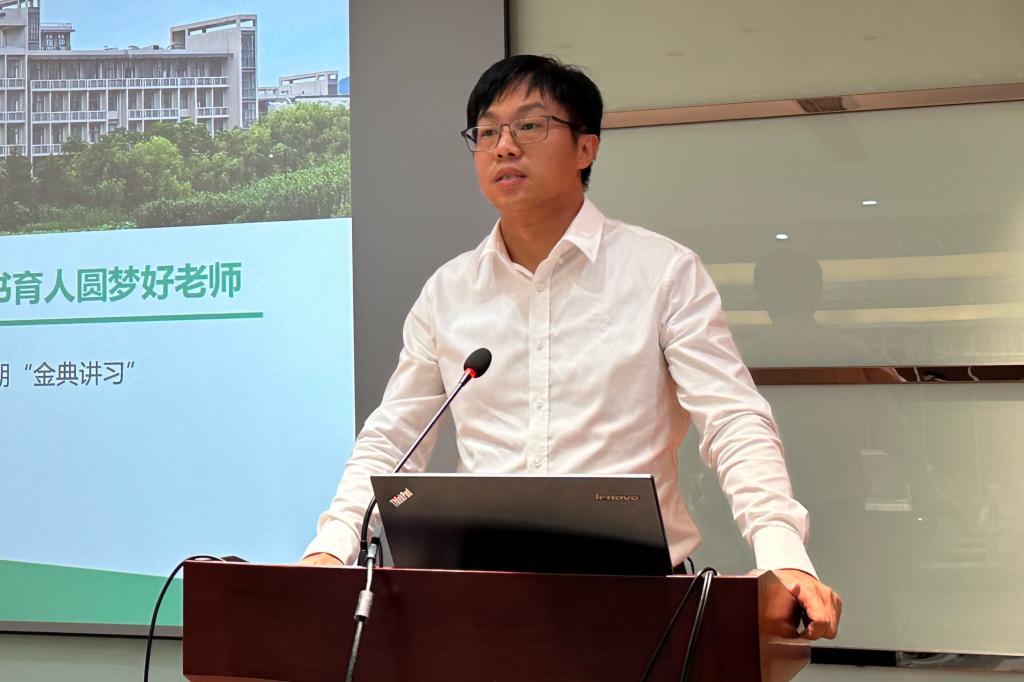 本次“金典讲习”活动围绕专业与课程建设、科研与团队拓展、卓越教学等方面进行了深入研讨。常州大学环境科学与工程学院院长、国家“万人计划”领军人才马江权教授作题为《化工专业建设和课程教学改革——以常州大学为例》的报告。他从化工专业发展、专业建设与改革、课程建设与改革、人才培养成效、个人成长等五个方面进行介绍,他勉励青年教师要爱岗敬岗,深扎专业,与时代同向,与学校同行。“全国五一奖章获得者”、享受国务院特殊津贴专家、江南大学教育部针织技术工程研究中心主任蒋高明教授以《围绕产业需求导向,探索高校科研模式》为题,围绕团队在学科交叉、校企合作、技术服务、国际交流和科学管理等方面的实践摸索,为青年教师进行经验分享。他强调,科研工作要坚持融合国家战略,依托优势学科,服务行业发展,他勉励青年教师要聚焦研究方向,整合各方资源,加强自身建设,在团队协作中实现个人价值。教育部国家级高层次人才、全国教育系统先进工作者、江南大学教务处处长李兆丰教授以《学以至善,卓越教学引领本科创新人才培养》为题,以“高质量人才培养”这一时代命题为切入点,就科研反哺教学、实现卓越教学、AI赋能教学的实施路径进行详细解读。他表示,青年教师是教学改革生力军,他鼓励青年教师主动发现教学问题、大胆开展教学改革与实践、以卓越教学引领高质量人才培养。青年教师焦星辰以课题组建设过程为脉络,回顾了入职江南大学东氿校区的两年成长经历,以“坚持不懈,终将收获;时光不负,努力之人”与所有青年教师进行了共勉。