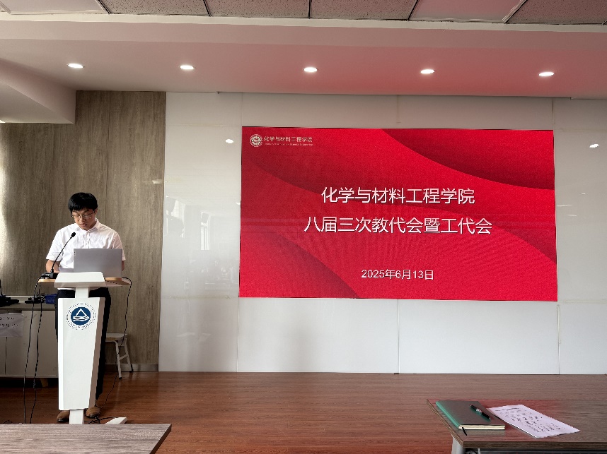 第八届教职工代表大会暨工会会员代表大会第三次会议在化工楼A316报告厅隆重召开。学院党政班子成员、各系部50余名正式代表出席大会。会议由院分工会主席董霞主持。