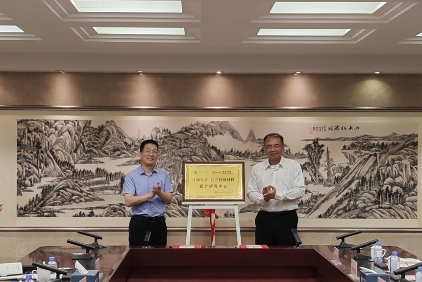 院长刘仁主持。江南大学党委常委、副校长戴月波在致辞中高度评价了此次合作的意义。他指出,长兴特殊材料作为行业领军企业,其产业化优势与江南大学化工学院的深厚科研积淀高度互补。联合研究中心的成立,是深化产教融合、推动科技成果高效转化的关键平台,期待中心能聚焦国家战略需求,在辐射固化胶黏剂等关键材料领域取得突破性成果,培养拔尖创新人才,服务产业升级。