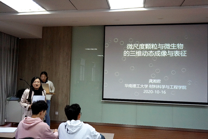 2020年10月16日,华南理工大学材料科学与工程学院龚湘君教授来多宝体育 访问,并于下午3:30在多宝体育 A316学术报告厅作了主题为“微尺度颗粒与微生物的三维动态成像与表征”的学术报告,化工学院罗静教授主持了该场报告。龚湘君教授从材料表征的基本需求出发,分析了微尺度三维成像技术,使我们深入了解诸如颗粒粘附、脱附、微生物附着生长等诸多重要的物理现象。龚湘君教授展示了一种基于光学干涉的三维显微成像技术-数字全息显微镜(Digital Holographic Microscopy (DHM)),并发展了高通量、高精度的三维追踪算法。他们的研究揭示了细菌对界面物理化学性质的主动响应是细菌近界面行为的重要组成部分,为我们设计新一代抗菌、防污和防腐材料提供了新思路。该场学术报告不仅吸引了化工学院众多师生,同时还吸引了许多食品学院、纺服学院和环土等学院的同学与老师聆听报告,现场气氛十分活跃。报告结束后,龚湘君教授就参会老师和学生的相关问题进行了详细的解答。