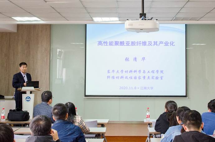 A316报告厅作了主题为“高性能聚酰亚胺纤维及其产业化”的学术报告,化工学院院长东为富教授主持了该场报告。张清华教授从有机高性能纤维的发展、应用背景和产业化所面临的问题出发,介绍了其团队在高性能聚酰亚胺纤维的基础研究和工程技术等方面的研究成果,解决了聚酰亚胺纤维干法纺丝成形及纤维染色等难题,建立了干法成形动力学模型及纤维凝聚态结构调控方法,在此基础上建成了干法纺聚酰亚胺纤维千吨级生产线。该场学术报告吸引了化工学院众多师生参加,报告结束后,张清华教授就参会老师和学生的相关问题进行了详细的解答,现场气氛十分活跃。