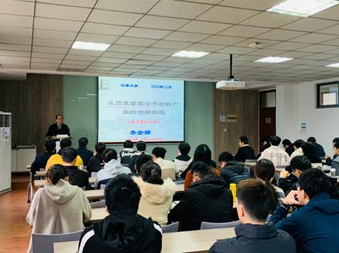 12月2日15:00,应多宝体育 邀请,中国石油化工集团首席专家乔金樑研究员在多宝体育 A316报告厅做了题为“从历史看高分子材料产业的创新机遇(以史为鉴知兴替)”的学术报告。多宝体育 副院长马丕明教授主持报告会,学院师生代表100余人参加了会议。报告中,乔金樑研究员从高分子科学发展史、产业化所面临的问题出发和高分子材料的闭环发展模式出发,为大家介绍了与日常生活密切相关的高分子材料开发中有待解决的一些科学问题。介绍了其团队在废旧高分子材料的回收利用技术和高分子材料新接枝方法等方面的研究成果,建立了一个无氧高温化学反应的平台,能够将废旧塑料降解为单体,将树枝等生物质降解为富氢气体,有望解决塑料白色污染等难题,使高分子产业甚至整个化工产业进入循环经济模式。
