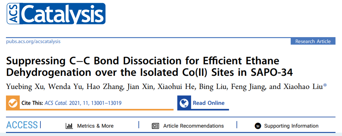 我校化工学院刘小浩团队在《ACS Catalysis》发表“乙烷无氧催化脱氢高效制乙烯”的最新研究成果