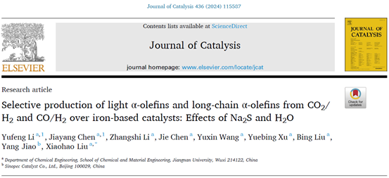 近日,江南大学化工学院刘小浩团队在合成气(CO+H2)铁基费托合成反应制长链α-烯烃的研究工作中取得重要突破,这一研究成果在催化领域权威期刊《Journal of Catalysis》上发表。该论文化工学院博士研究生李玉峰、硕士研究生陈加扬为共同第一作者,刘小浩教授为通讯作者。