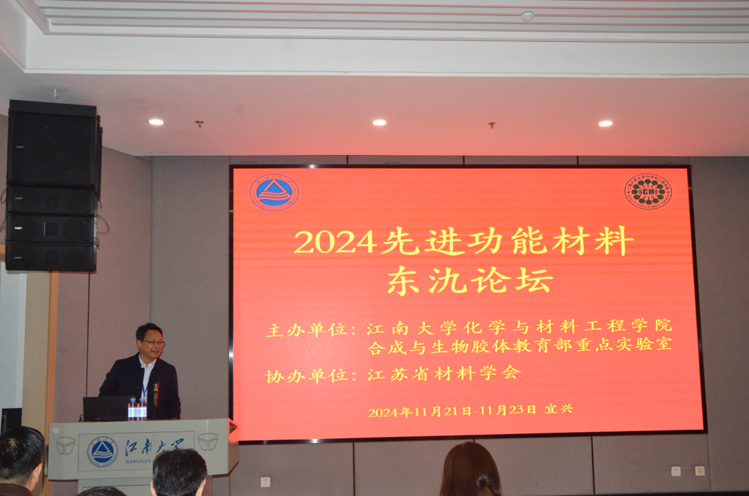 、合成与生物胶体教育部重点实验室主办,江苏省材料学会协办的先进功能材料东氿论坛在江南大学东氿校区知行楼C106学术报告厅顺利举行。来自清华大学、复旦大学、上海交通大学、中国科学技术大学、天津大学、南开大学、南京大学、东南大学、华中科技大学、江南大学、北京化工大学、苏州大学、西北工业大学、南京工业大学、五邑大学、中科院理化技术研究所等十余所高校和科研院所的二十余名专家学者出席了本次论坛,围绕先进功能材料领域的最新研究成果及发展趋势展开学术交流。
